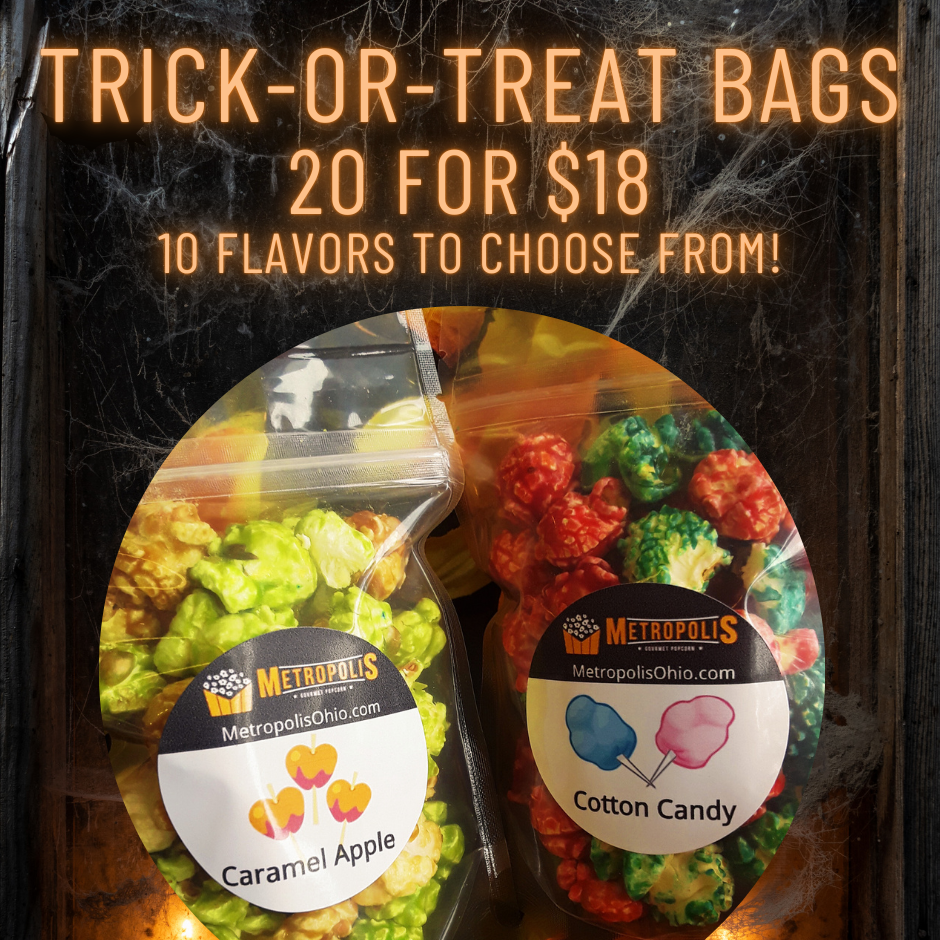 These 1-cup Trick or Treat bags are perfect for classroom parties, Halloween parties and your neighborhood Trick or Treat! Limited flavors available at this promotional price. Flavors in this promotion are gluten free but may contain traces of nuts including peanuts. Promotion ends 10/31/2025. Other flavors available at regular prices by calling 330-928-6446. Trick or treat bags stay fresh up to 30 days as packaged.